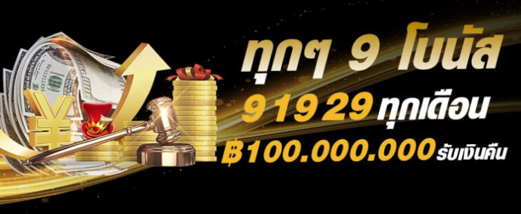 สำหรับผู้ที่สมัครใหม่กับ win9999 จะได้รับโบนัสต้อนรับสูงสุดถึง 100% ทันทีหลังจากฝากเงินครั้งแรก เช่น ฝาก 300 รับ 600 บาท หรือฝาก 500 รับ 1,000 บาท พร้อมสิทธิ์พิเศษทดลองเล่นเกมได้ทุกค่ายโดยไม่จำกัดเกม